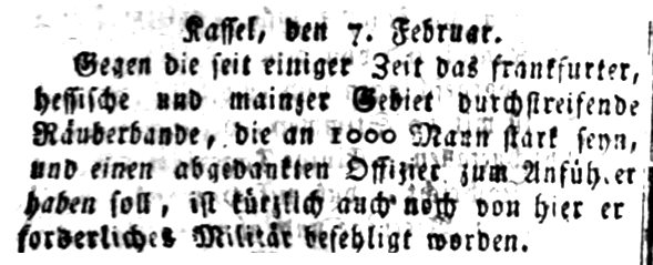 In der Frankfurter Presse wurde die Schinderhannes-Bande gleich nach dem Überfall von Würges auf 1000 Mann gebracht.